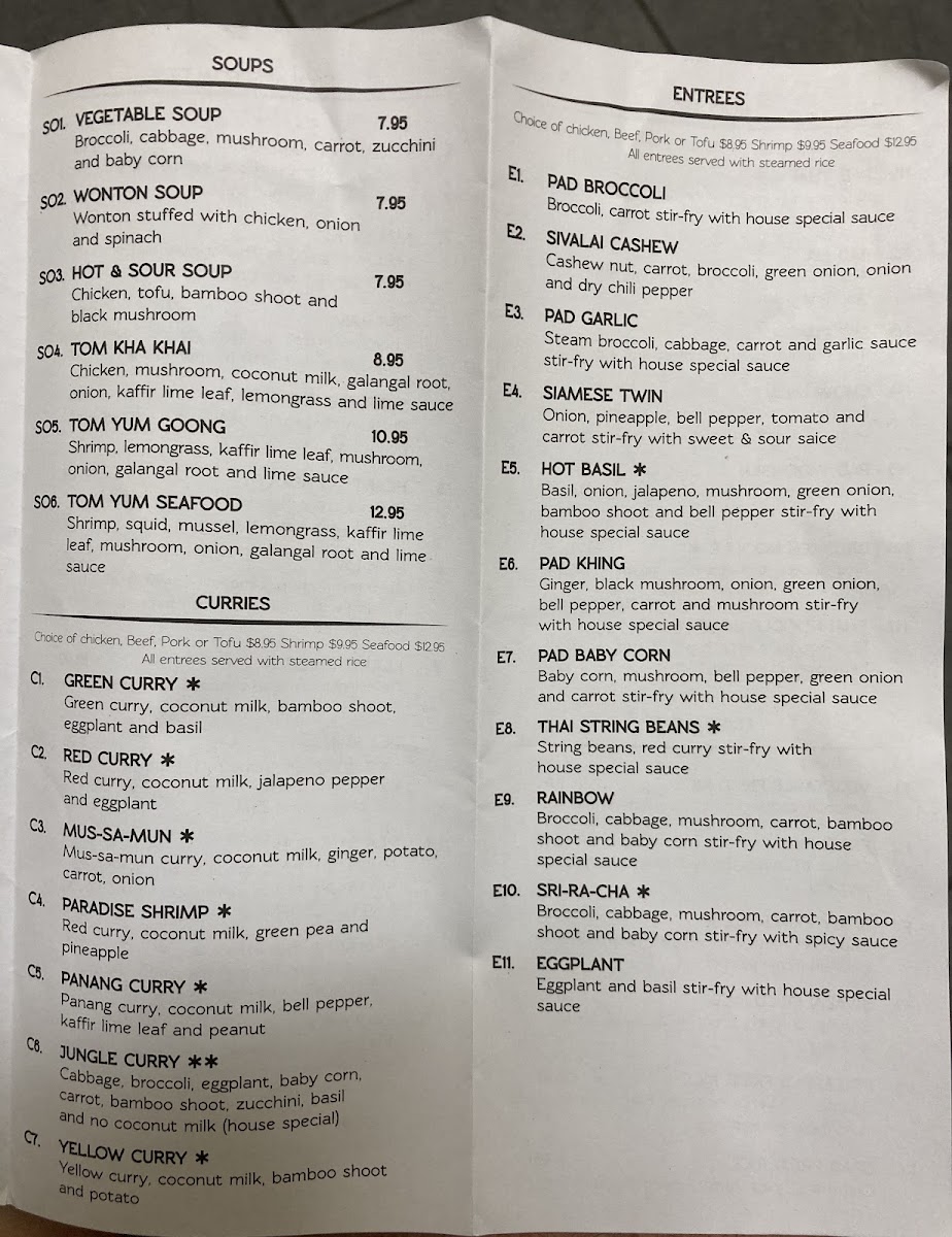 Sivalai Thai Restaurant in Portland offers a vibrant menu that captures the essence of Thai cuisine. Highlights include the Flame Chicken, deep-fried grilled chicken paired with broccoli and a sweet Thai chili sauce for just $15. A must-try is the PRA RAM, where your choice of meat is nestled in a bed of spinach, curry peanuts, and cabbage, drizzled with delectable peanut sauce at $14.