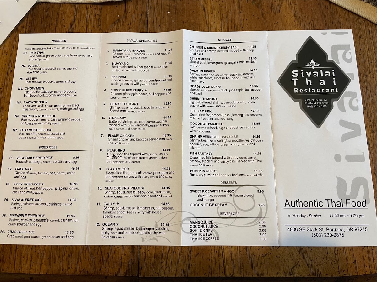 Sivalai Thai Restaurant Menu (2025 Update)